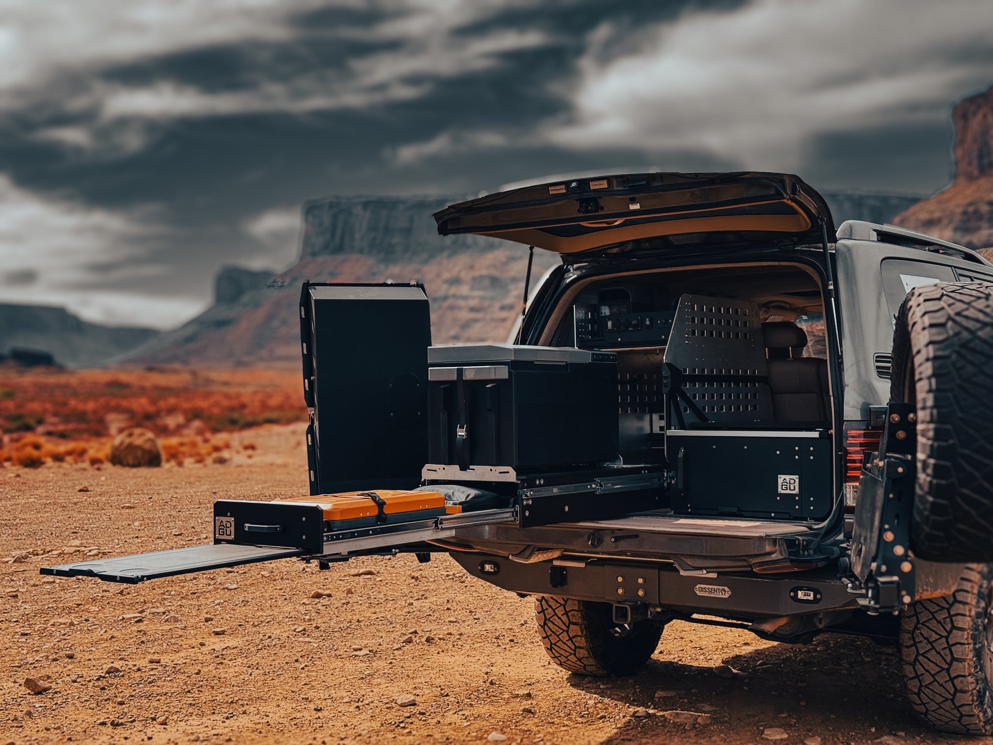 This option protects your fridge from the rest of your cargo, keeps objects from falling behind your fridge and provides a multitude of mounting solutions for any kind of gear you want to keep handy in your car.